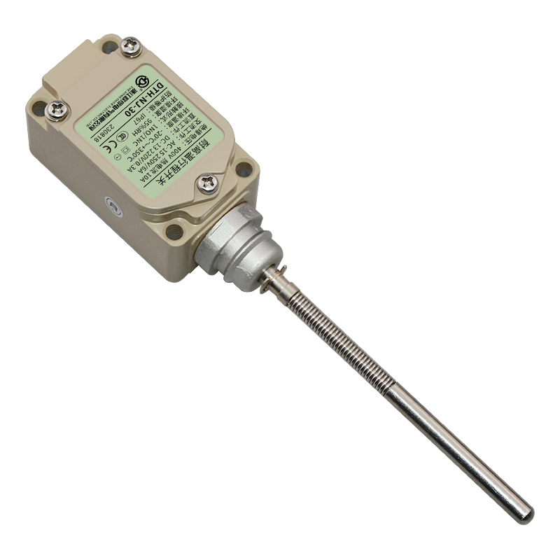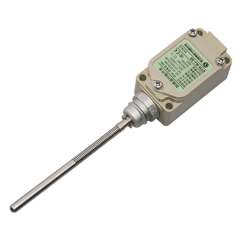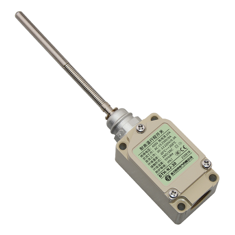 • DTH-NJ-30耐高溫行程開關,頂端實心棒·盤簧棒型,萬向式、通用直立型,長壽命2回路限位開關。適用于鋼鐵、焦化、電廠、紡織、醫(yī)療、化工、鋁材、塑料、玻璃、輪胎等高溫加工機械設備,作位移電路通斷信號檢測控制。