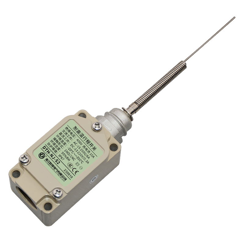 • DTH-NJ-S2耐高溫行程開關(guān),頂端鋼針·盤簧棒型,萬向式、通用直立型,長(zhǎng)壽命2回路限位開關(guān)。適用于鋼鐵、焦化、電廠、紡織、醫(yī)療、化工、鋁材、塑料、玻璃、輪胎等高溫加工機(jī)械設(shè)備,作位移電路通斷信號(hào)檢測(cè)控制。