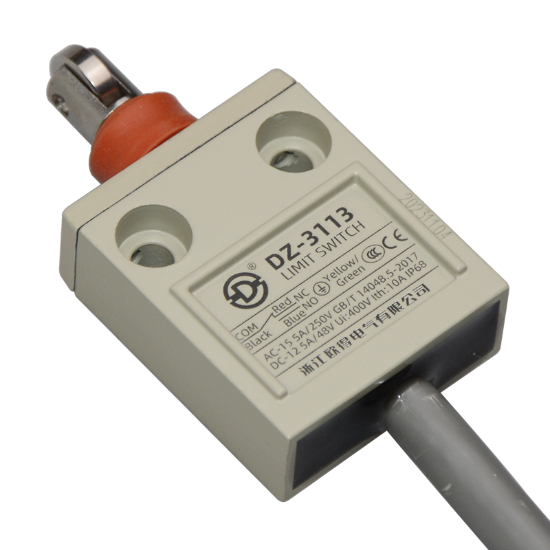 • DZ-3113防水行程開關(guān),密封式橫向滾輪柱塞型,通用直立型,小型、薄形、IP68防護(hù)等級(jí),樹脂與耐油軟線融合牢固,高度密封性兼具的緊湊型限位開關(guān)。適用于積水、潮濕環(huán)境下的機(jī)械設(shè)備,作位移電路通斷信號(hào)檢測(cè)控制。