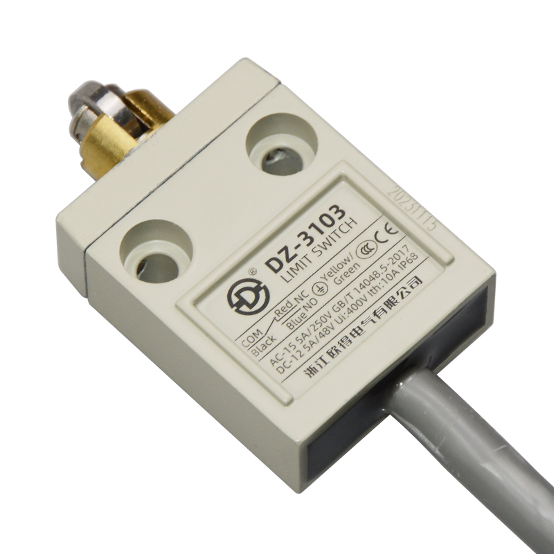 • DZ-3103防水行程開關(guān),橫向滾輪柱塞式,通用直立型,小型、薄形、IP68防護(hù)等級,樹脂與耐油軟線融合牢固,高度密封性兼具的緊湊型限位開關(guān)。適用于積水、潮濕環(huán)境下的機(jī)械設(shè)備,作位移電路通斷信號(hào)檢測控制。