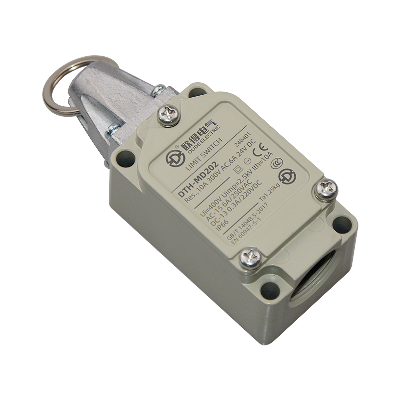 • DTH-MD202安全拉繩開(kāi)關(guān),拉動(dòng)式、自動(dòng)復(fù)位,2回路(1常開(kāi)1常閉),金屬殼體,堅(jiān)固耐用。主要控制輸送帶、流水線急停限位。額定絕緣電壓400伏,發(fā)熱電流10安培,交流工作電壓250伏、工作電流6安培,直流工作電壓220伏、工作電壓0.3安培,防護(hù)等級(jí)IP66(安裝電纜防水接頭后)。