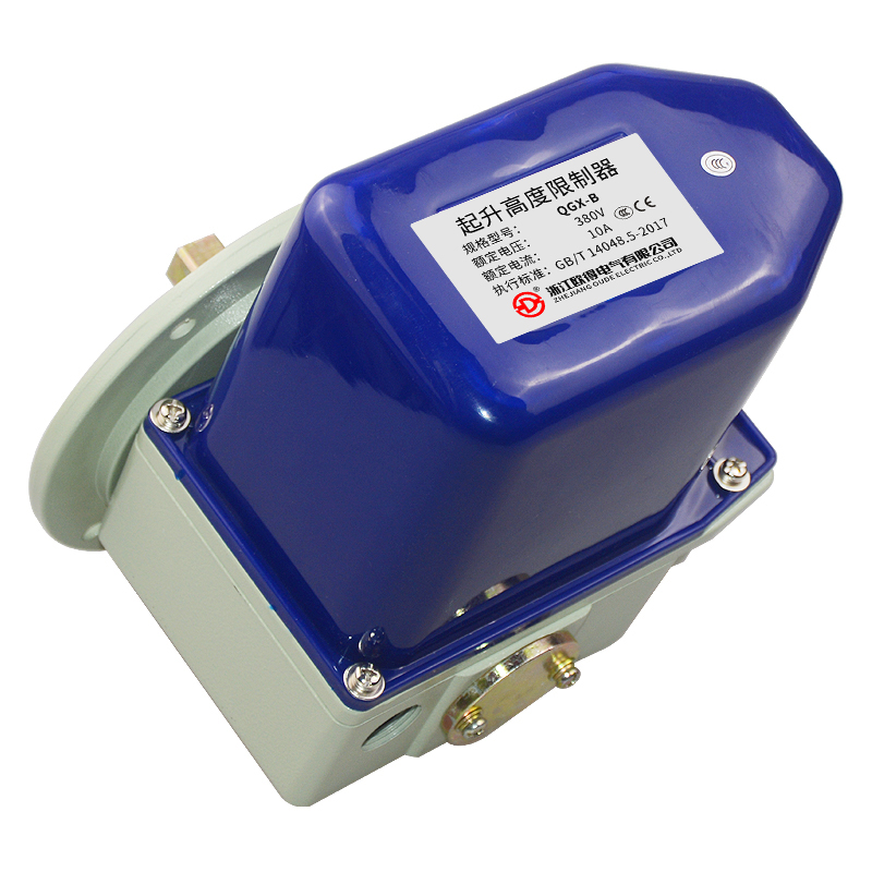 起升高度限制器(QGX-C),卷筒有效工作圈數(shù)0~120圈。絕緣電壓400伏,發(fā)熱電流10安培,工作電壓電流交流380伏、2.6安培,直流220伏、0.4安培,防護(hù)等級IP54。