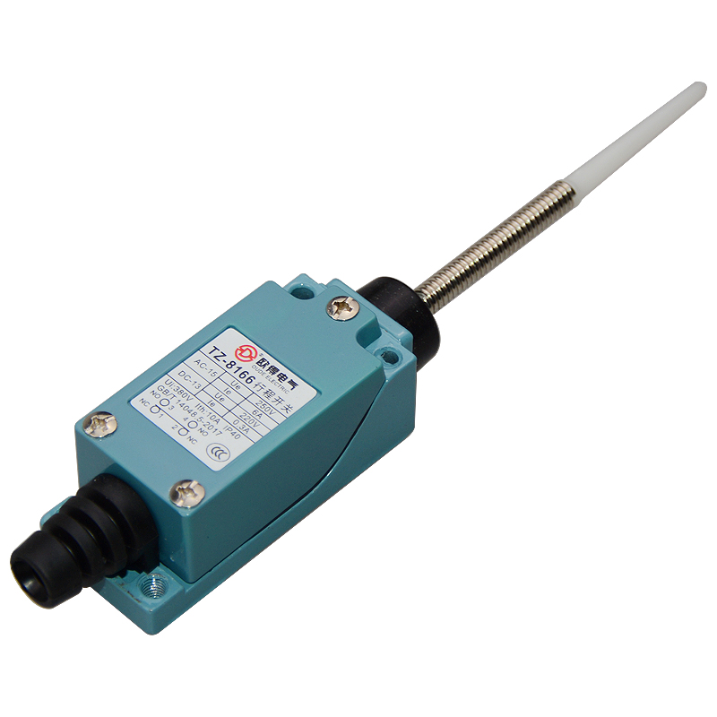 • TZ-8166行程開關,彈簧棒樹脂萬向式,2回路型(1常開1常閉)限位開關。絕緣電壓380伏,耐沖擊電壓2.5kV,發(fā)熱電流10安培,交流工作電壓250伏、電流6安培,直流工作電壓220伏、電流0.3安培,防水等級IP40(安裝后)。產品標準和技術要求 GB/T14048.5-2017。
